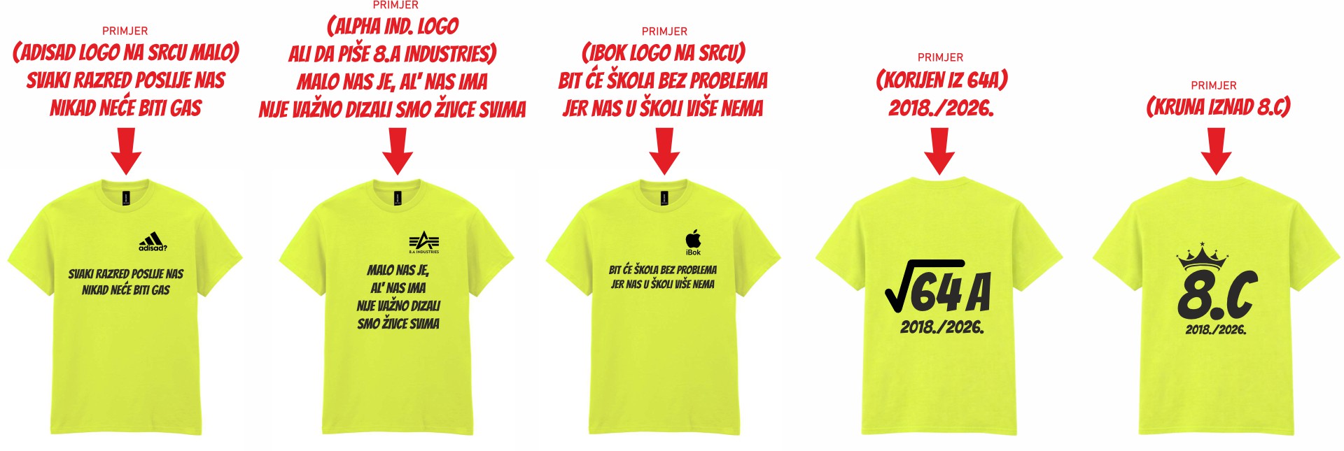U svakoj narudžbi poklanjamo ti besplatnu dostavu, gratis majicu za razrednika, jedan marker za pisanje po majicama, paket od 37 vodenih balona s brzim punjenjem, jedan vodeni pištoljčić/fidget spinner, a uz svaku majicu šaljemo gratis zviždaljku s vezicom oko vrata. (I za razrednika 😀) Ako želiš više vodenih balona ili vodenih pištoljčića na zadnjem koraku kod naručivanja možeš dodati dodatne balone/pištoljčiće uz doplatu.